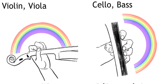 If you haven’t introduced the concept of a “tunnel” yet, this is the perfect opportunity. Have students play an open A string (or open G string for bass players) while placing all four fingers down on the adjacent D string. This creates a finger “tunnel” that allows the open string to vibrate freely underneath. For the A string to ring clearly, students must maintain proper left-hand shape—with arched fingers, lifted knuckles, and rounded “rainbow” hand posture. It’s a simple yet powerful way to reinforce good technique and hand position.