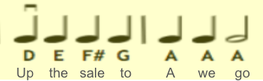 I will often use the words: “up the scale to A we go” in Lightly Row to help students understand they are just walking stepwise up the D major scale from note D to A.